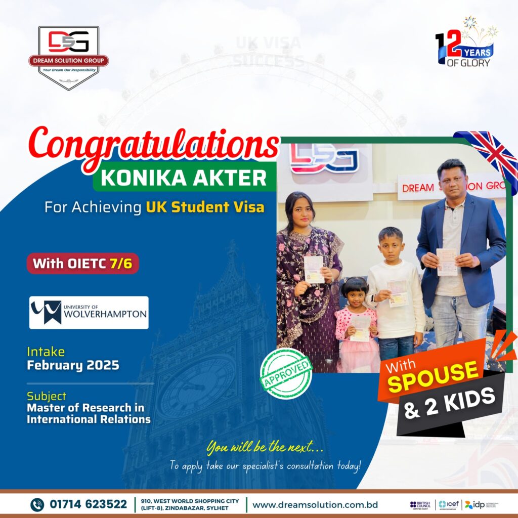 At ๐ƒ๐ซ๐ž๐š๐ฆ ๐’๐จ๐ฅ๐ฎ๐ญ๐ข๐จ๐ง ๐†๐ซ๐จ๐ฎ๐ฉ, we are thrilled to have assisted yet another family in achieving their dream of studying and living in the UK. Konika Akter is now set to begin her academic journey at one of the UK’s prestigious institutions, paving the way for a brighter future for her family.